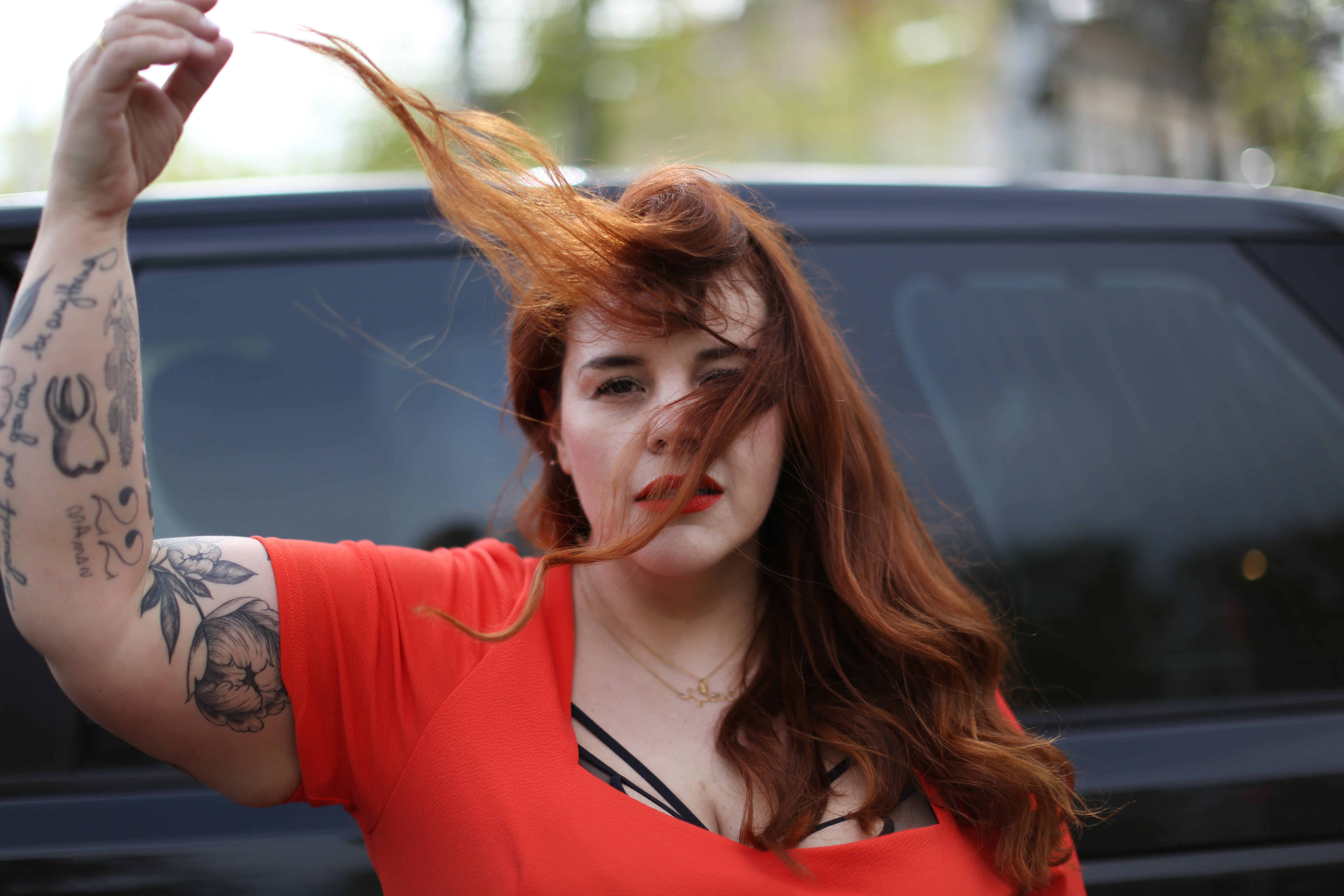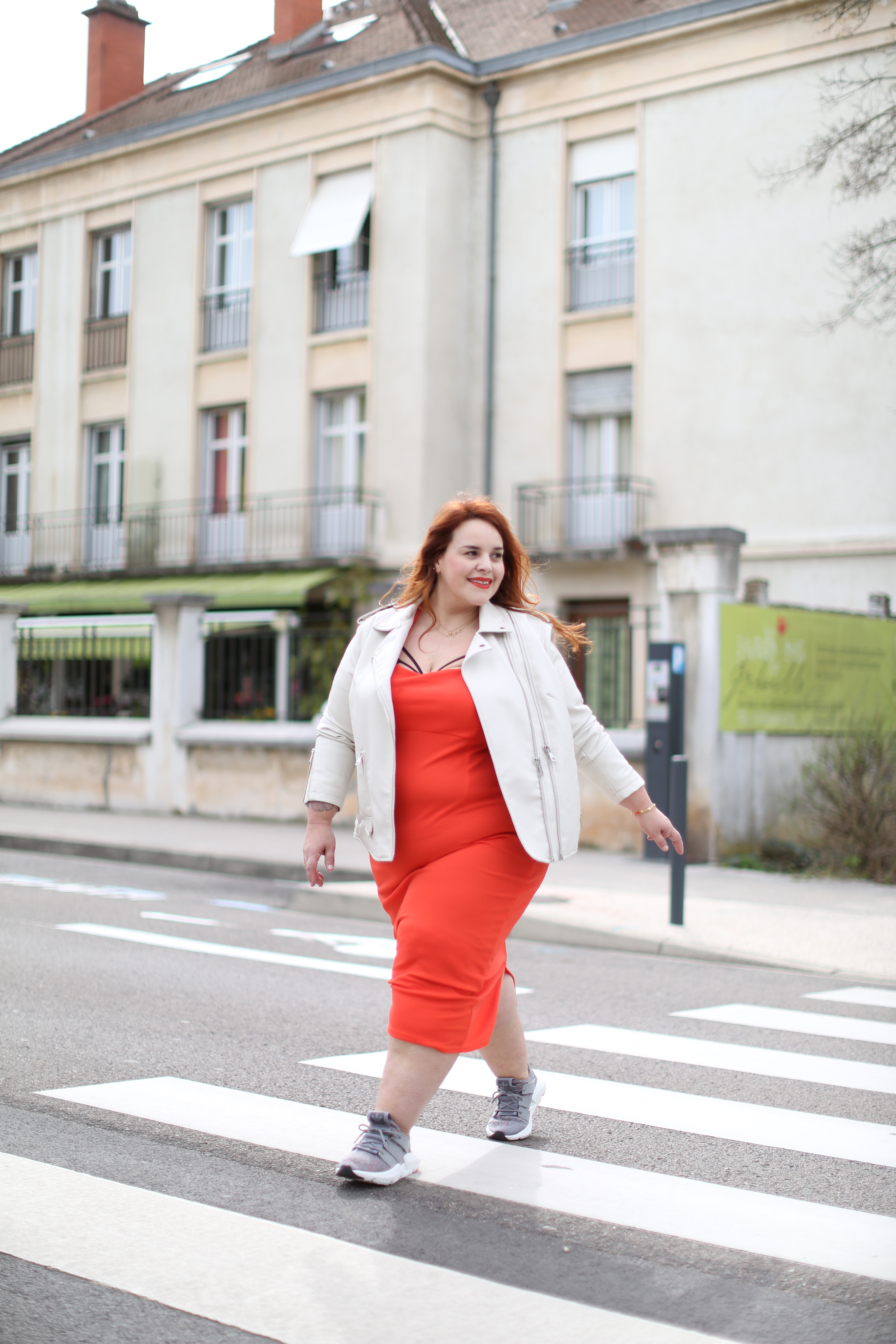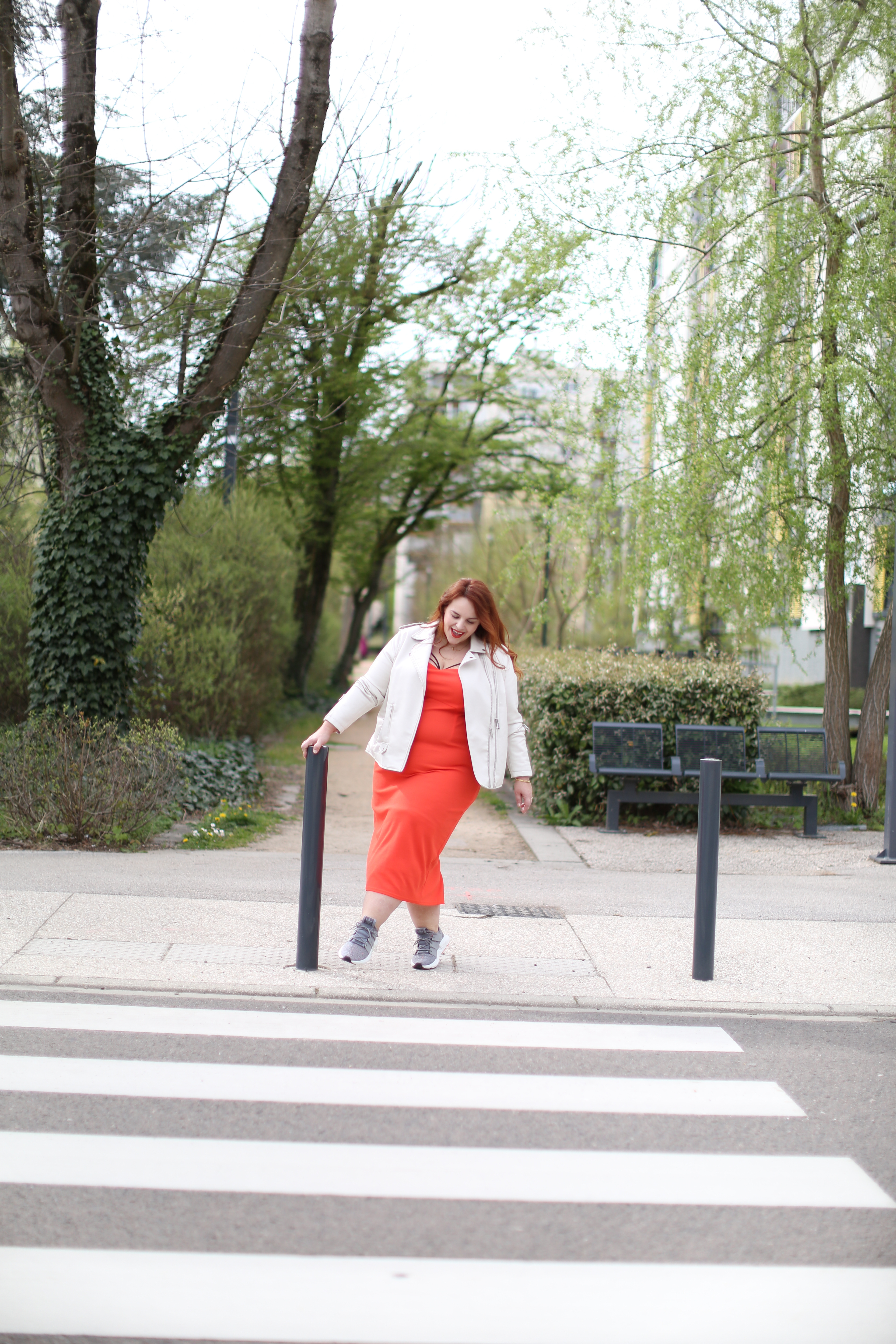 J’adore la couleur de cette robe, c’est exactement la teinte que je porte en rouge à lèvres habituellement. Un rouge orange flamboyant qui donne bonne mine!